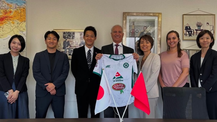 ساهم لاعب ياباني محترف قي نقل قميص فريق مغربي إلى سفارة المملكة المغربية باليابان على هامش احتفالات المملكة بعيد الشباب.