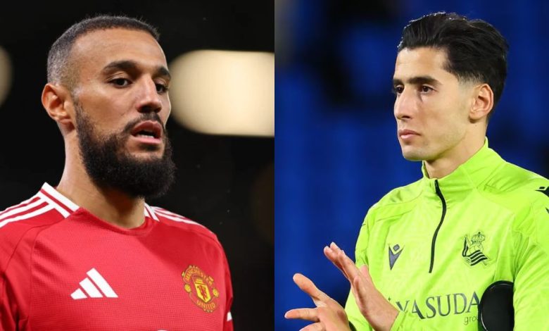 شهدت المباراة التي جمعت ريال سوسيداد الإسباني، بنظيره مانشستر يونايتد الإنجليزي، توقفا، بسبب الثنائي المغربي، نايف أكرد ونصير مزراوي.