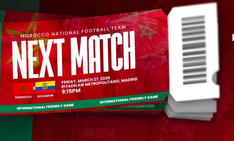 أعلنت اللجنة المنظمة للمباراة الودية التي ستجمع المنتخب الوطني المغربي بنظيره الإكوادوري، شهر مارس المقبل بمدينة مدريد الإسبانية، عن انطلاق عملية بيع تذاكر اليوم الجمعة 13 فبراير 2026، على الساعة السادسة مساء.